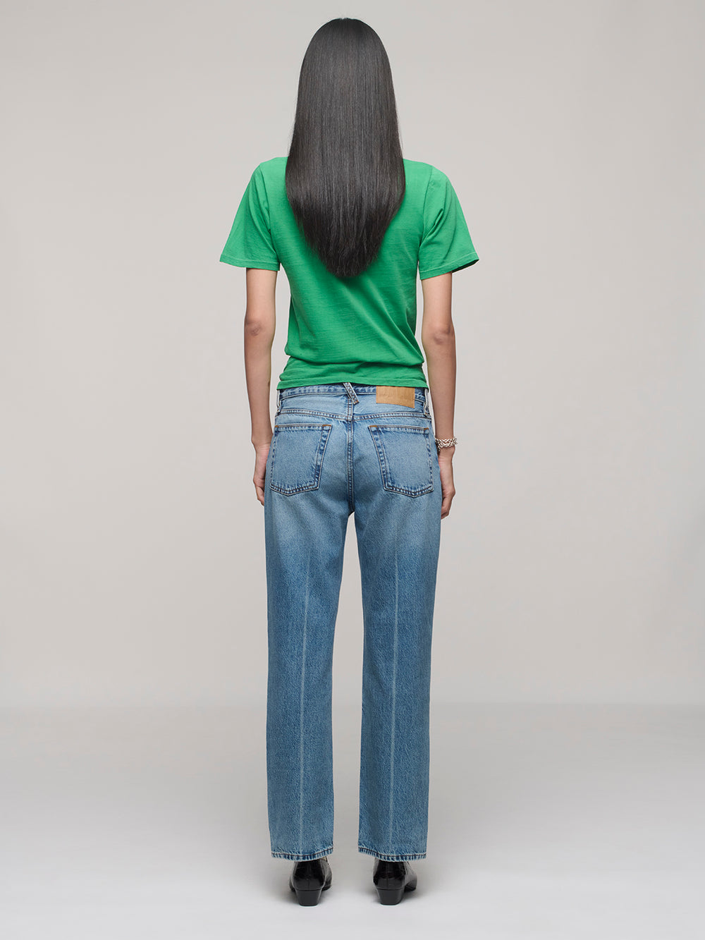 Cuffed Starch Jeans - Flat Blue