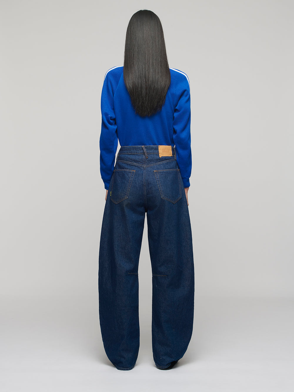 A mid-high rise jean with a zip fly and a full-length curved horseshoe leg, finished with front flat-seam detailing. Fits true to size - size up for a looser fit. Designed to pair with the Lido Jacket. Made with Italian rigid denim in 100% organic cotton, finished with a low-impact wash for a lighter footprint. Produced in Paraguay by BDA.