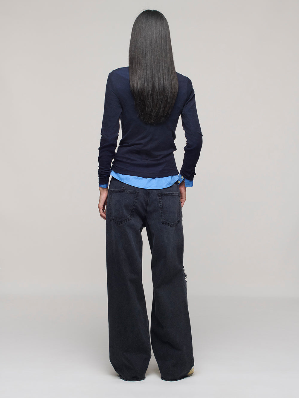 This garment has a low impact wash to try and reduce the footprint that our denim leaves behind. To find out more head over to our denim care and size guide page.