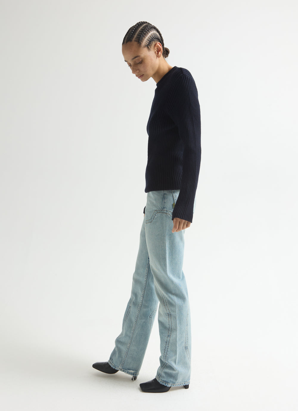A high-rise jean with a button fly, slim through the thigh, and straight through the full-length leg. Designed with signature DALA stitching and made to pair with the Broken Corset. This style may feel snug at first but will soften and mould with wear. Size up for a looser fit. Made with Italian rigid denim in 100% organic cotton, finished with a low-impact wash for a lighter footprint. Produced in Paraguay by BDA.