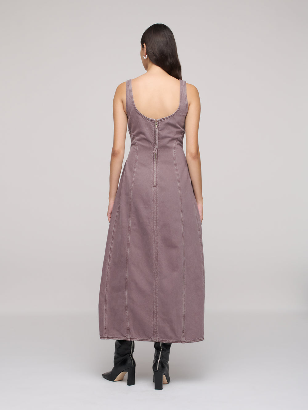 The Cocoon Bustier dress has a fitted bust and waist through to an exaggerated cocooned shaped skirt. It features signature DALA seam detailing, with godet panels at the hips and is finished with a CB zip. Made from rigid Italian denim in 100% organic cotton and washed with a low-impact process that reduces water and chemical use. Produced in Paraguay by BDA.