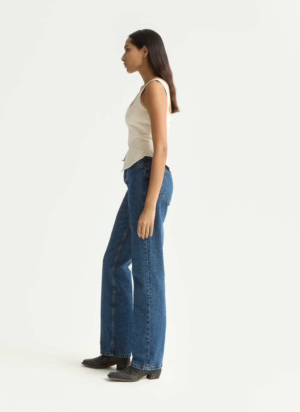 Our Broken Corset, contoured throughout, was created with all bodies in mind. Fitted to the body with a square neck, back zip, seam detailing and fully lined for comfort. Designed to hold you like a corset - snug when you zip it up, but comfortable once you're in. Cut from rigid Italian denim in 100% organic cotton and washed with a low-impact process that reduces water and chemical use. Produced in Paraguay by BDA.